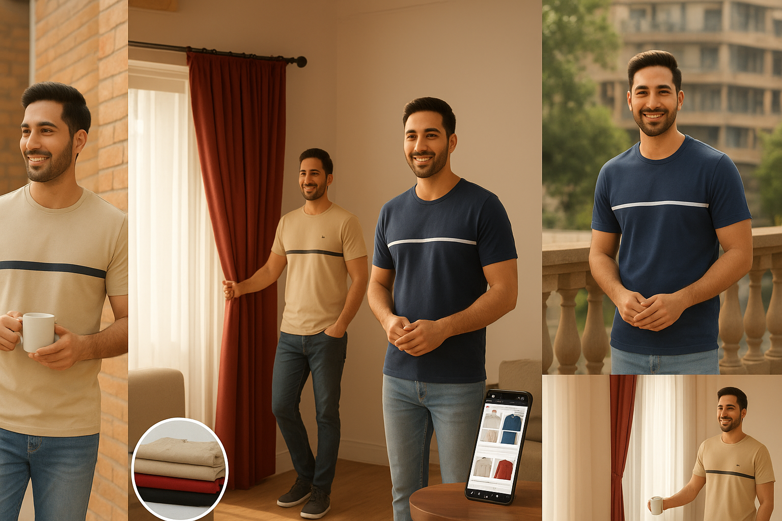 Beige Casual T-Shirt with Contrast Stripe Design for Men